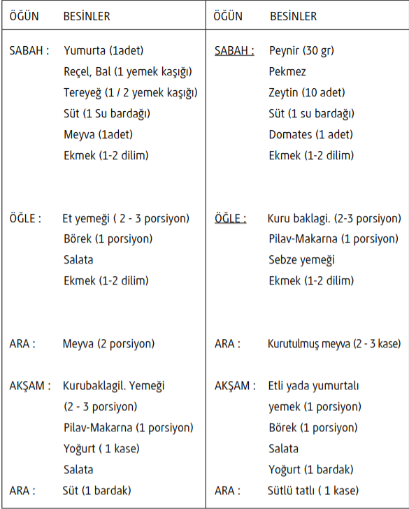 Not: Örnek oluşturulması amacıyla 2 günlük program paylaşılmıştır.Çocuklarımızın yaşı ve kalori ihtiyaçları farklı olduğundan,programımız genel olarak hazırlanmıştır. Sevgili Velirimiz sizlerde örnek beslenme programına göre çeşitlendirme yapabilirsiniz.